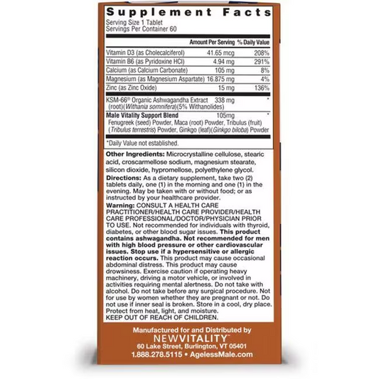 Ageless Male Booster Supplement with Ashwagandha by New Vitality 60ct
