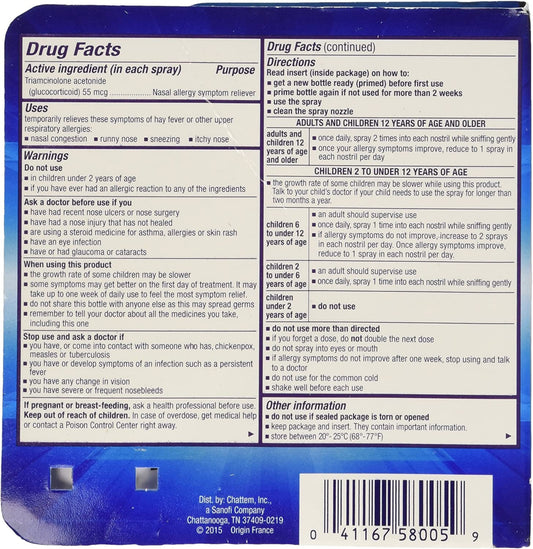 Nasacort 24HR Allergy Nasal Spray, Non-drowsy, 120 Sprays, 0.57 fl.oz. 2pk