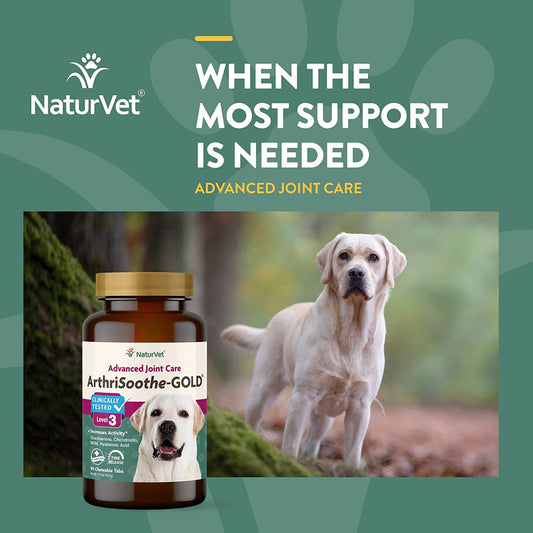 NaturVet ArthriSoothe Gold Level 3 Advanced Joint Care–Supports Connective Tissue, Cartilage & Joint Movement – Glucosamine, MSM, Chondroitin & Green Lipped Mussel – 90ct Tablets - Dogs & Cats