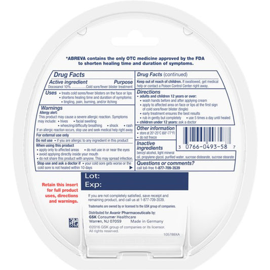 Abreva Docosanol 10% Fever Blister and Cold Sore Treatment .07 oz 2 Pk