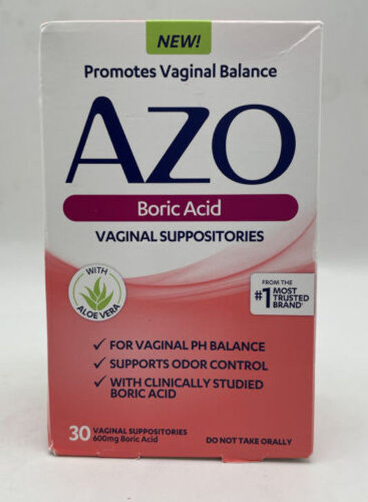 AZO Boric Acid Vaginal Suppositories, Helps Support Odor Control and Balance Vaginal PH with Clinically Studied Boric Acid, 30 Count