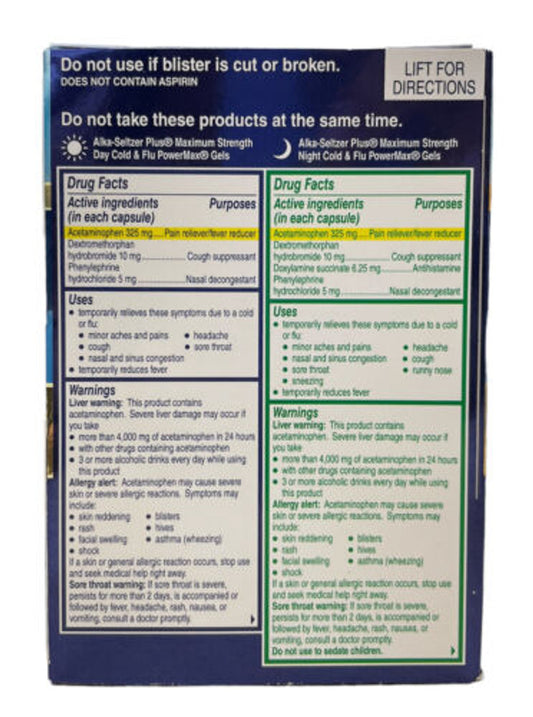 Alka Seltzer Plus PowerMAX Gel Cold&Flu Day/Night 36 ct