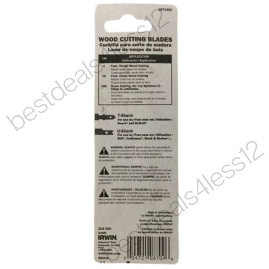 Irwin Marathon 3071410D 4" 10TPI U-Shank Down Cut Jig Saw Blades Pack of 3