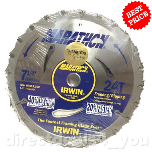 Irwin Marathon Circular Saw Blade For Framing Ripping 7-1/4" 24T Pack of 7