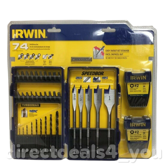 Irwin Drill & Drive Set 60 Tips 9 Twist Drills 5 Spade Tips Container Pack of 2