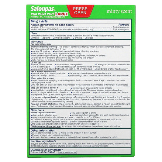 Salonpas Pain Relieving Menthol and Methyl Salicylate 9 Patchs Exp 2025