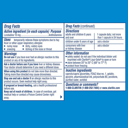 Claritin 24 Hour Allergy Medicine, Antihistamine, Liqui-Gels, 30 Ct