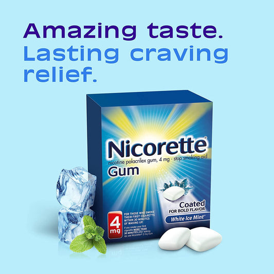 Nicorette Nicotine Gum to Stop Smoking, White Ice Mint Flavor 4 Mg, 20 Count