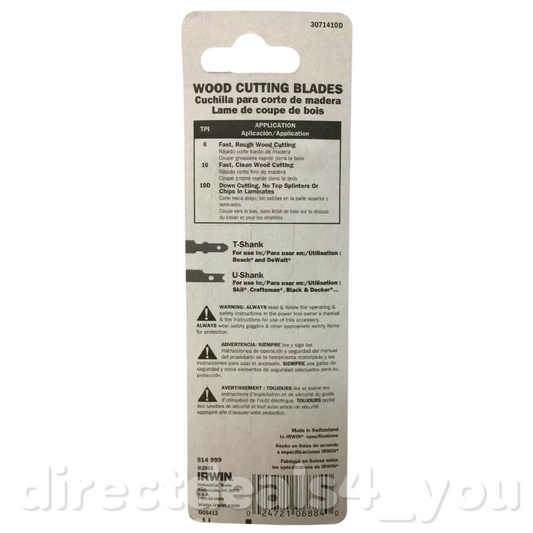Irwin Marathon 3071410D 4" 10TPI U-Shank Down Cut Jig Saw Blades Pack of 3