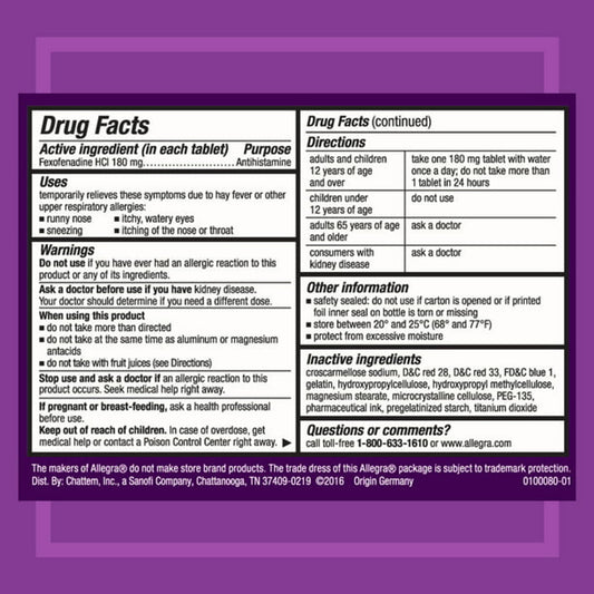 Allegra Adult 24HR Gelcaps (24 Ct, 180 mg), Allergy Relief