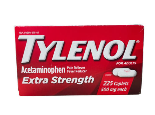 Tylenol Extra Strength Caplets with 500 mg Acetaminophen, Pain Reliever & Fever Reducer, Acetaminophen for Headache, Backache & Menstrual Pain Relief, 225 ct